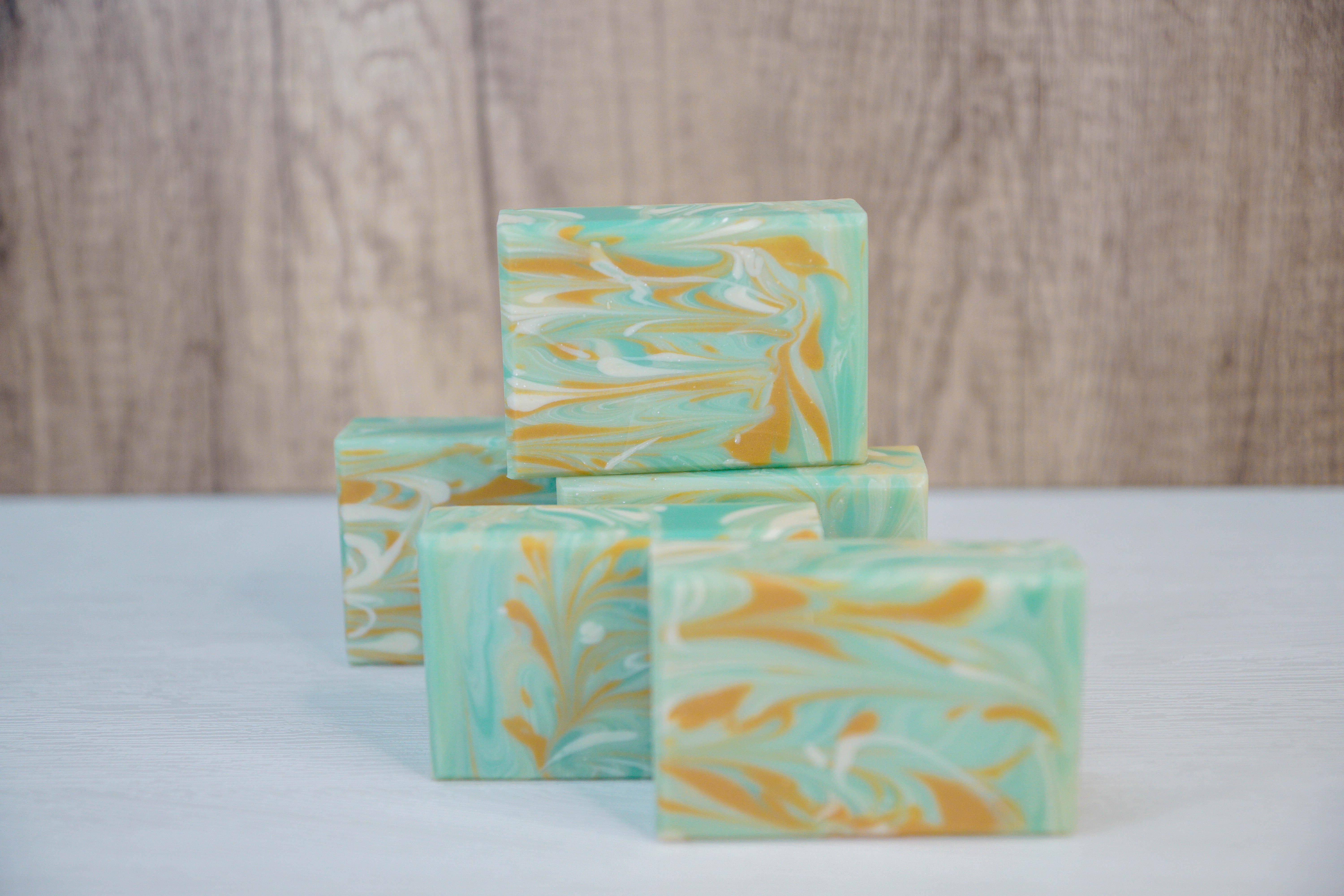 l 添加:綠礦石粉、橘色雲母粉、二氧化鈦。檸檬香茅、雪松、薰衣草精油。